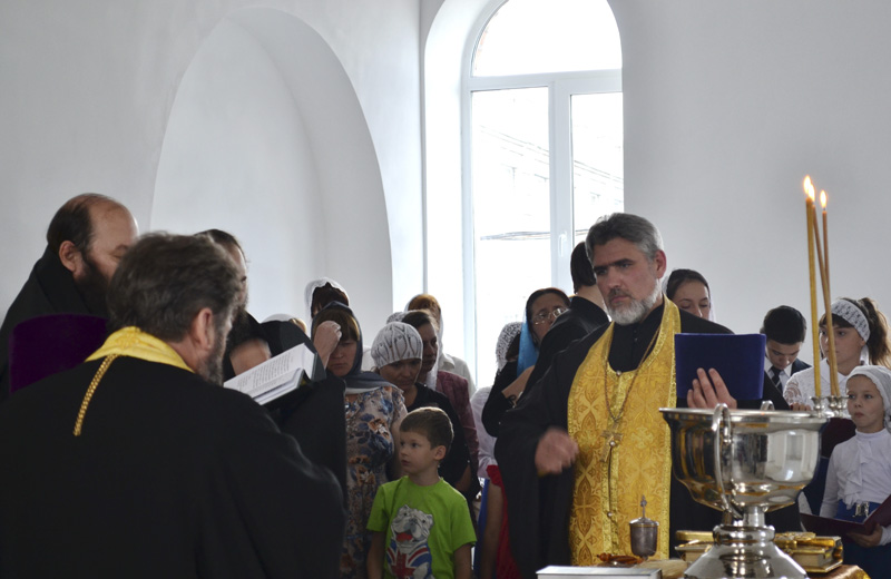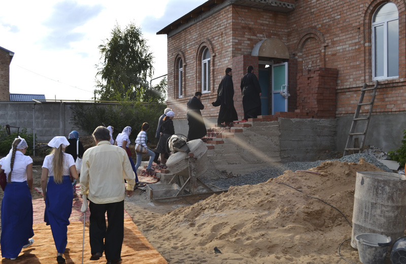 В декабре 2013 г., когда в здание подали тепло, о. Анатолий в сослужении диакона Иоанна совершил молебен на призывание помощи Божией во всяком добром деле, чтобы строительство продолжилось. А детский хор исполнил песнопения.