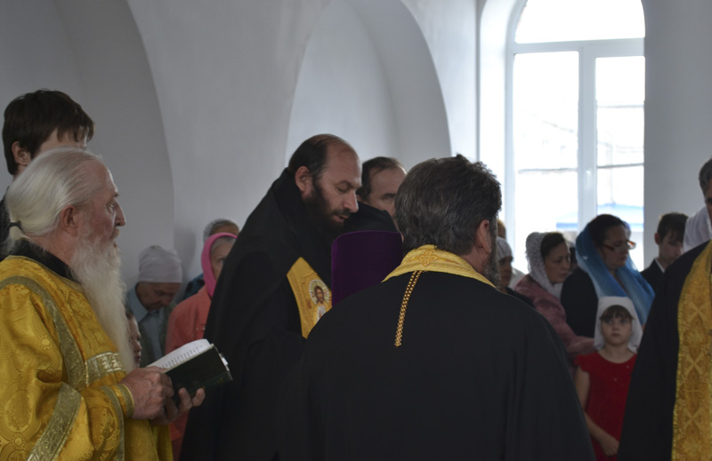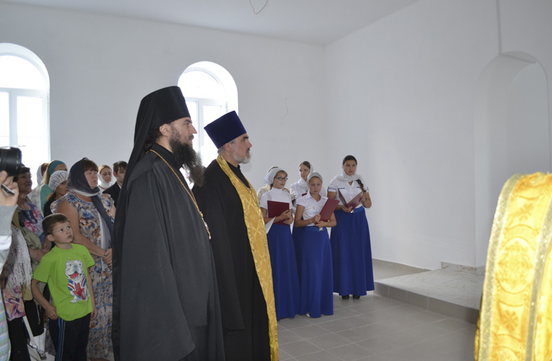 Вечером во дворе храма в этот день было очень многолюдно: дети, взрослые, пожилые и младенцы. Все оживлены, на лицах радость. Мы с нетерпением ожидали предстоящее торжество. И вот началось богослужение. Возглавил чин освящения епископ Орский и Гайский Ириней. Его Преосвященству сослужили: Преосвященнейший Феодосий, епископ Исилькульский и Русско-Полянский; иерей Вячеслав Кочкин, благочинный Адамовского округа, настоятель храма Покрова Пресвятой Богородицы п. Адамовки; протоиерей Анатолий Сопига, настоятель Покровского храма (бывшего монастыря) г. Орска; иерей Игорь Гогалюк, настоятель Орского храма иконы Пресвятой Богородицы «Избавительница» и диакон Иоанн Алексеев, клирик нашего храма.