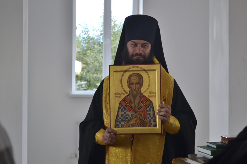 Затаив дыхание, мы молились в новом храме, который располагается на первом этаже школы, а наш детский хор сопровождал молебен песнопениями. Освящение школы состоялось в день Ангела владыки Иринея, и о. Анатолий поздравил архипастыря и преподнес ему икону небесного покровителя – священномученика Иринея, епископа Лионского.
