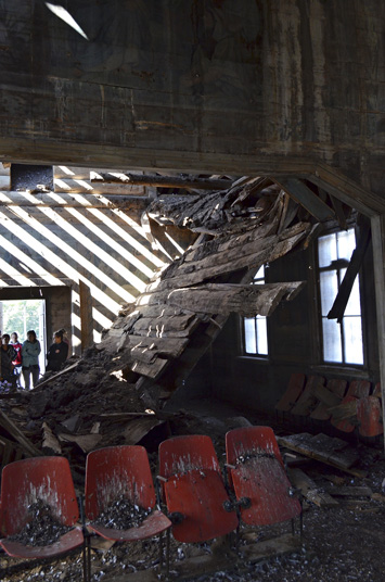Положение усугубляется и тем, что месяц назад в результате урагана обвалились ветхие перекрытия крыши средней части храма, и весь проход был засыпан почти по колено саманом и глиной. Посему и было решено среди мероприятий Отдела на оставшийся год выделить время на реставрацию и консервацию ветхого здания.