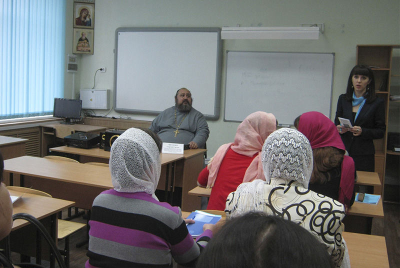 25 сентября православная гимназия св. прав. Иоанна Кронштадтского г.Оренбурга принимала в своих стенах гостей на секцию «Опыт преподавания духовных дисциплин как средство приобщения подрастающего поколения к истокам православной культуры». Встречу вступительной речью открыл ректор гимназии прот. Георгий Горлов, познакомив гостей с историей создания гимназии и поделившись опытом в воспитании и обучении подрастающего поколения. Потом было дано три открытых урока: О. Мокшенинова провела урок по церковно-славянскому языку в 5 классе, в 6 классе прошёл урок Закона Божия, который провёл В. Шубкин, и в 10 классе гости побывали на уроке латинского языка у Л. Ильиной. Группа гостей разделилась на три подгруппы, побывав на одном из занятий. После уроков прошло обсуждение увиденного, обмен мнениями и опытом. Орскую епархию на Чтениях представлял клирик Спасо–Преображенского храма иерей Александр Карпунин. После семинара ректор гимназии прот.Георгий Горлов через иерея Александра Карпунина передал в дар библиотеке православной гимназии во имя св.царственных мучеников г.Орска свои авторские книги, подписав одну из них.