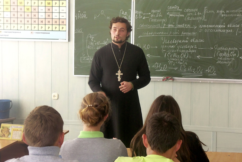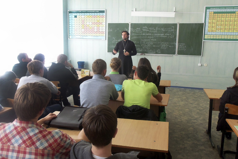 МЕДНОГОРСК. 8 октября 2014 г. Настоятель храма святителя Николая Чудотворца микрорайона Южного иерей Максим Малюта провел беседу с учащимися Медногорского индустриального колледжа.