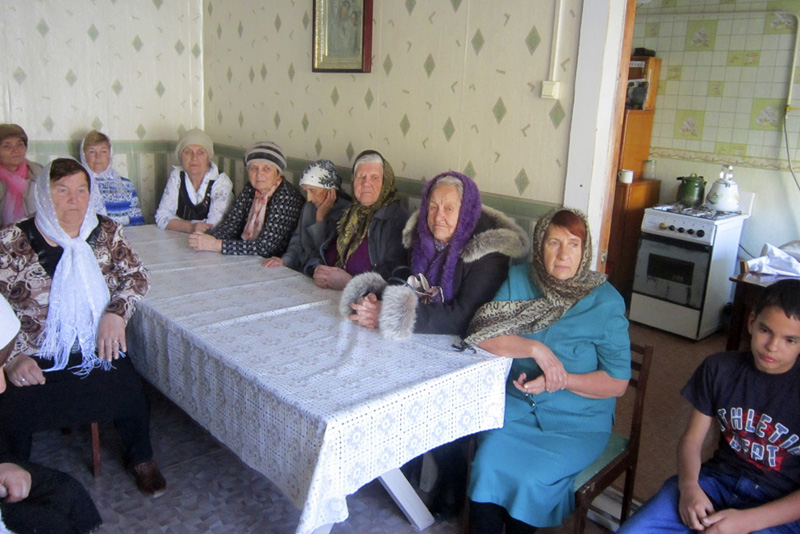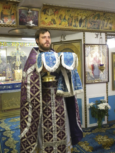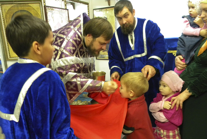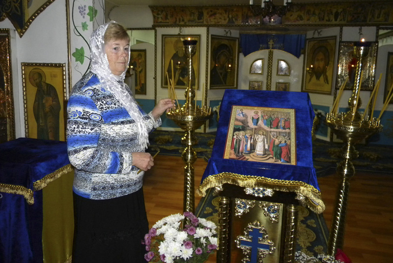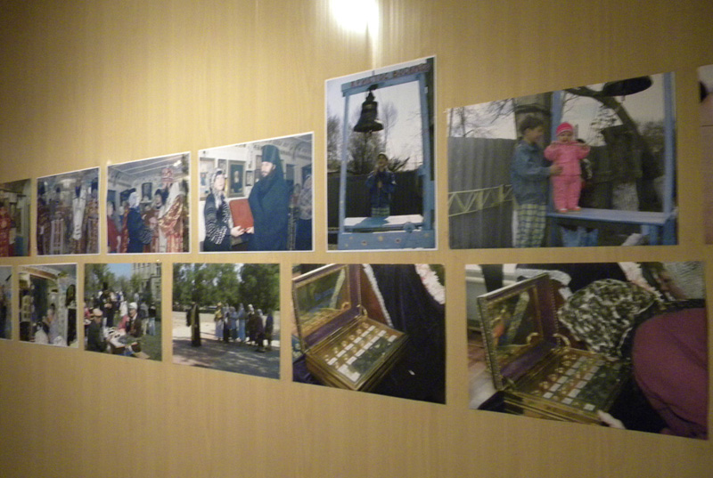 Входя в храм, в коридоре на стене люди видели архивные фотоснимки прихода, собранные многими годами. Эти фотографии отец Феодор разместил на приходской фотовыставке «Под Покровом Богородицы». Рядом расположили рисунки воспитанников воскресной школы «Лествица».