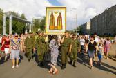 ЯСНЫЙ. 5 июля 2012 г. Незабываемо пребывание главных святынь Первой Всероссийской выставки «Семейный очаг» в г. Ясном. Горожане за два часа собрались возле места строительства нового храма – отсюда традиционно начинаются крестные ходы. Настоятель храма вмч. Пантелеимона игумен Онисим (Пашинов) и его паства, множество ясненского православного люда с душевным трепетом встретили чудотворную икону св. блгв. кнн. Петра и Февронии, Муромских чудотворцев, а также св. икону прп. Паисия Величковского с посохом.