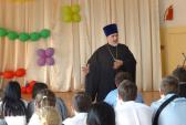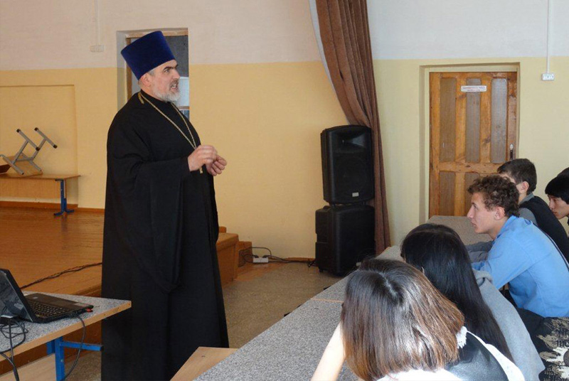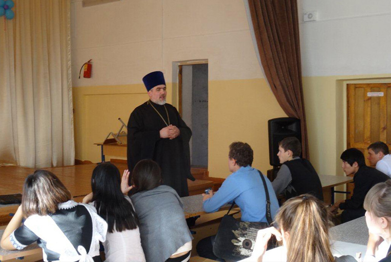 ЕЛИЗАВЕТИНКА. 27 октября 2014 г. Благочинный Адамовского округа, настоятель храма Покрова Пресвятой Богородицы п. Адамовки иерей Вячеслав Кочкин прочёл лекцию для учеников 9-11 классов Елизаветинской средней школы.