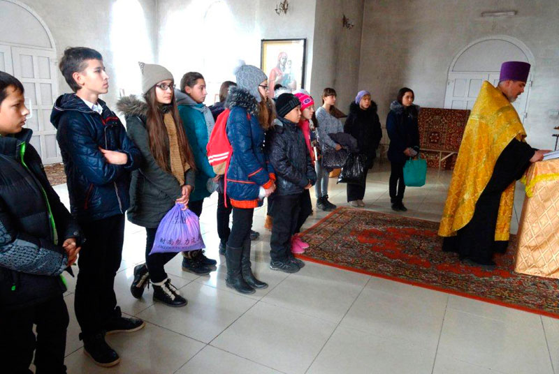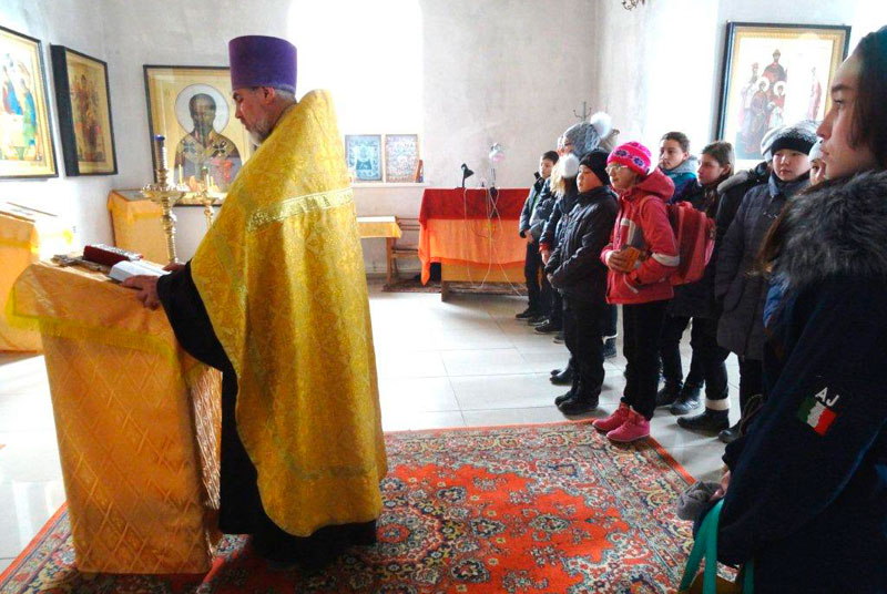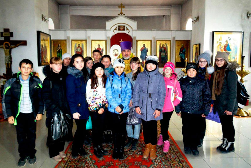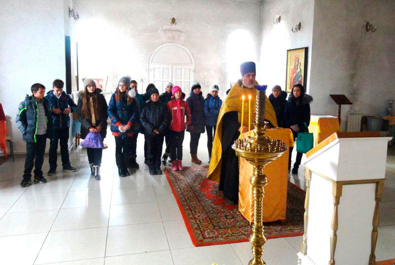 АДАМОВКА. 30 октября 2014 г. В храме Покрова Пресвятой Богородицы посёлка Адамовки благочинный Адамовского округа иерей Вячеслав Кочкин совершил молебен перед путешествием для учеников 8 класса Адамовской средней школы № 1.