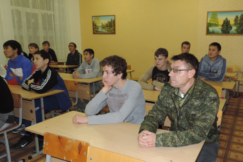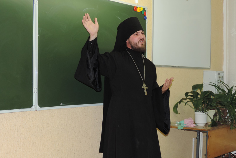 В этот день со старшеклассниками общались бойцы пограничных войск, МВД и МЧС. Батюшка пришел в школу, чтобы тоже пообщаться с ребятами, будущими защитниками нашего Отечества, на тему "Кто такой патриот". Ребята слушали батюшку с большим вниманием и задавали интересные вопросы, с любопытством слушая ответы. Священник, курсанты кадетского класса и педагоги остались довольны и наметили следующую встречу, которая пройдет в ближайшее время.