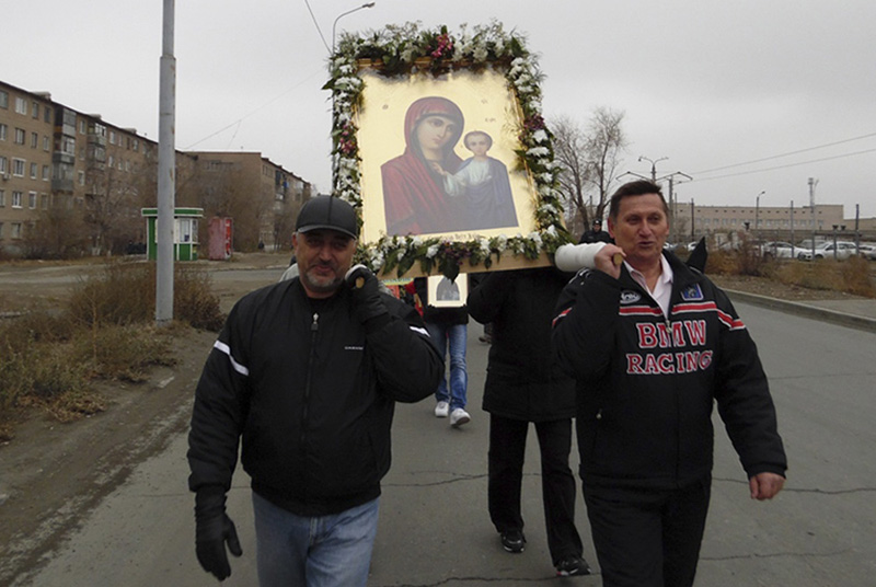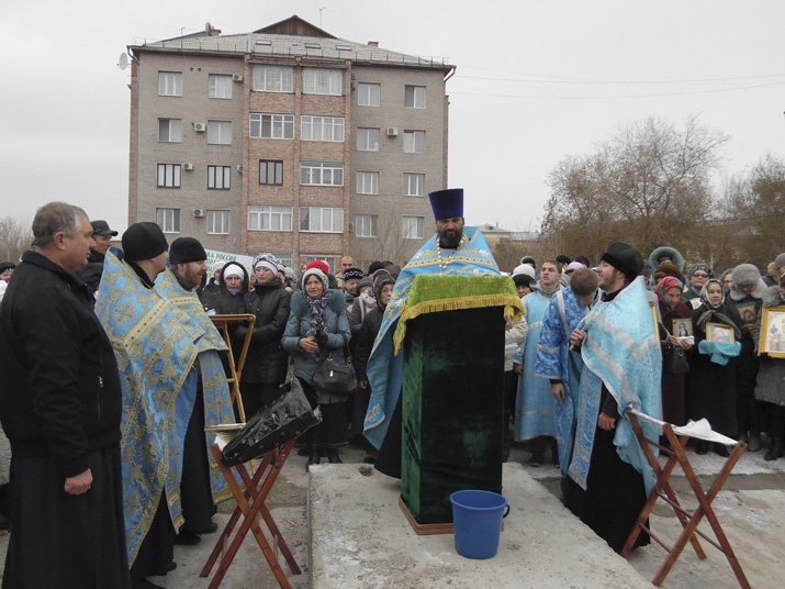 На месте строящегося храма верующие молились перед иконами «Казанской» Божией Матери о скорейшем строительстве храма. Благочинный Новотроицкого округа протоиерей Сергий Кваша сказал проповедь, после чего все верующие по традиции прошли под иконой Богородицы и тем же крестным ходом отправились обратно в храм.