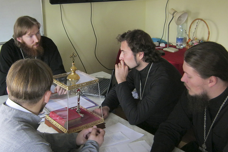 На совещании присутствовали сотрудники центра: эксперт иерей Максим Бражников, эксперт иерей Максим Малюта, эксперт иерей Геннадий Новиков, эксперт диакон Григорий Сычев, консультант иерей Сергий Новиков. Совещание прошло в классе воскресной школы, где были разобраны актуальные вопросы по проведению миссионерской конференции и дальнейшие планы работы центра.