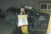 Святыню в районный центр вечером из Кумака доставил настоятель храма иерей Герман Шадрин вместе с хранителем иконы Сергеем Фоминым. Небольшой образ Божьей Матери «Умягчение злых сердец» уже в течение двенадцати лет путешествует по миру, являя дивное живое чудо мироточения и кровоточения.