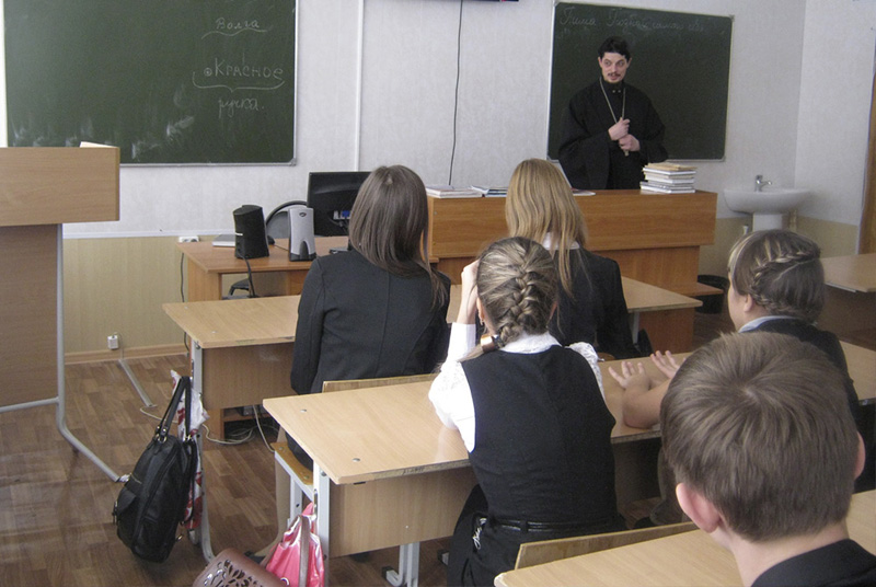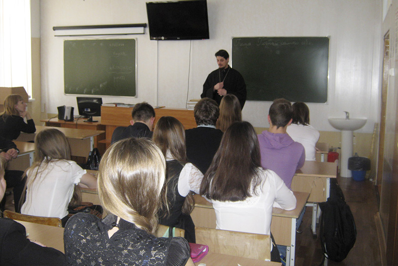 ОРСК. 20 ноября 2014 г. По приглашению руководства средней школы № 37 иерей Александр Карпунин, клирик Спасо-Преображенского храма г. Орска, провел встречу с учениками 10 класса.