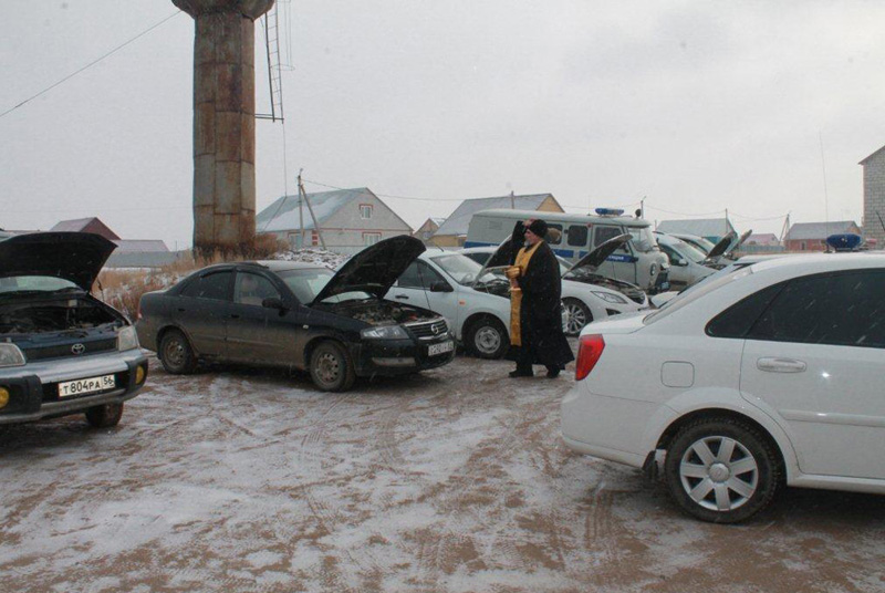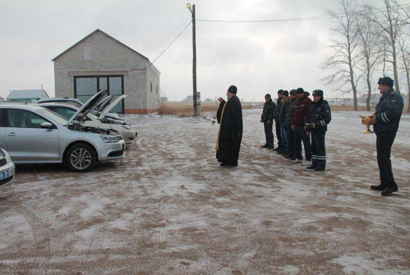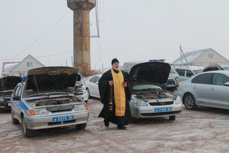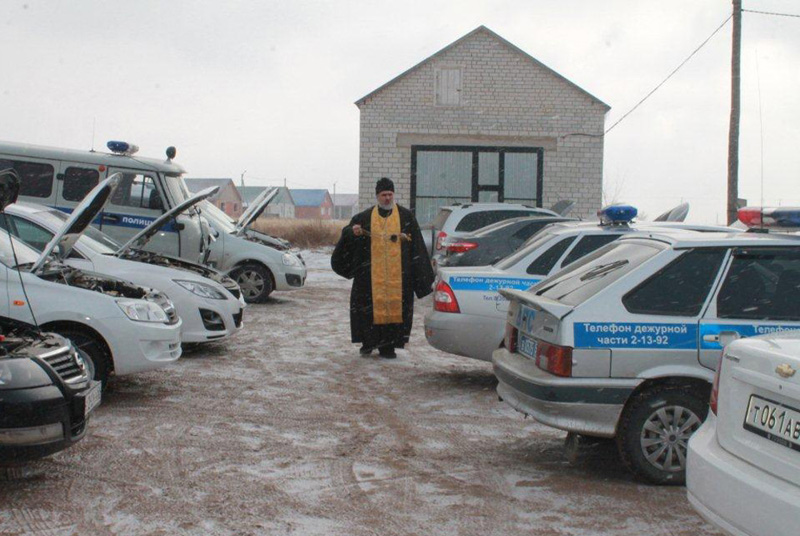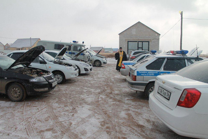 АДАМОВКА. 20 ноября 2014 г. Благочинный Адамовского округа иерей Вячеслав Кочкин совершил освящение служебных и личных машин сотрудников ГИБДД посёлка Адамовки.