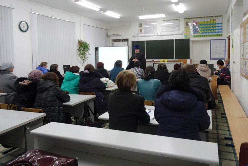 АДАМОВКА. 28 ноября 2014 г. Благочинный Адамовского округа иерей Вячеслав Кочкин выступил на родительском собрании в Адамовской школе №1.