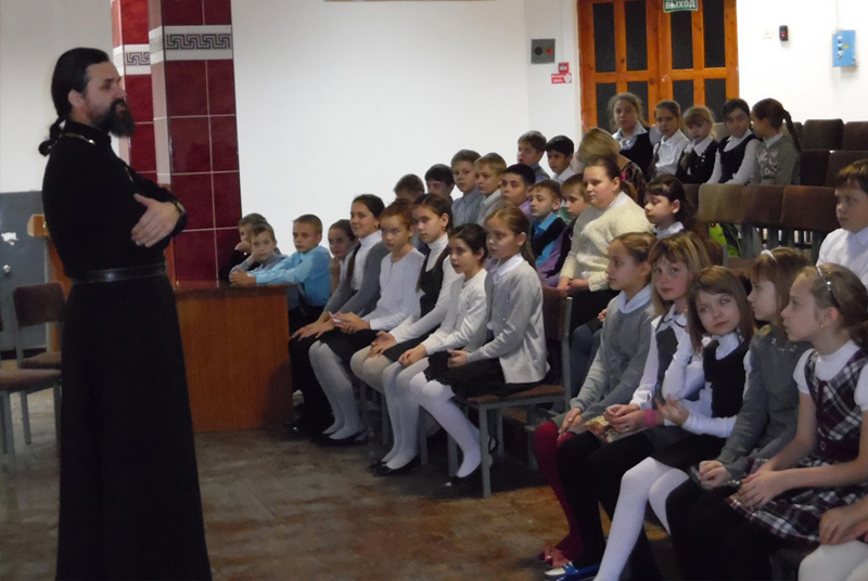 Протоиерей Сергий Кваша провёл беседы со школьниками 4-х классов и со студентами «МИСиС» о духовных законах. Священник рассказал о каждой Заповеди Божией подробно на доступном школьникам и студентам языке.