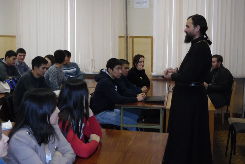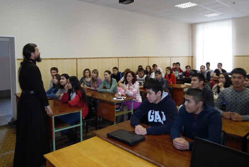 НОВОТРОИЦК. 2 декабря 2014 г. По просьбам администрации СОШ № 23 г. Новотроицка и Новотроицкого филиала НИТУ «МИСиС» благочинный Новотроицкого округа, настоятель собора святых апостолов Петра и Павла г. Новотроицка протоиерей Сергий Кваша и ответственный по миссионерской работе на территории Новотроицкого округа, клирик Петропавловского собора г. Новотроицка иерей Сергий Новиков посетили названные учреждения.