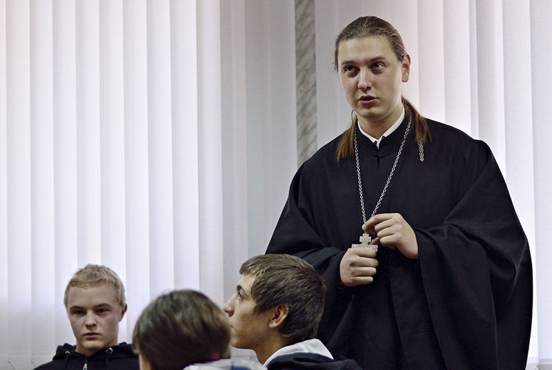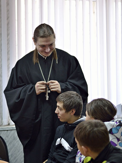 ОРСК. 12 декабря 2014 г. В здании администрации Октябрьского района города Орска состоялась воспитательная беседа с подростками, стоящими на учете. Для проведения беседы был приглашен клирик храма святого великомученика и целителя Пантелеимона иерей Александр Курсаков.