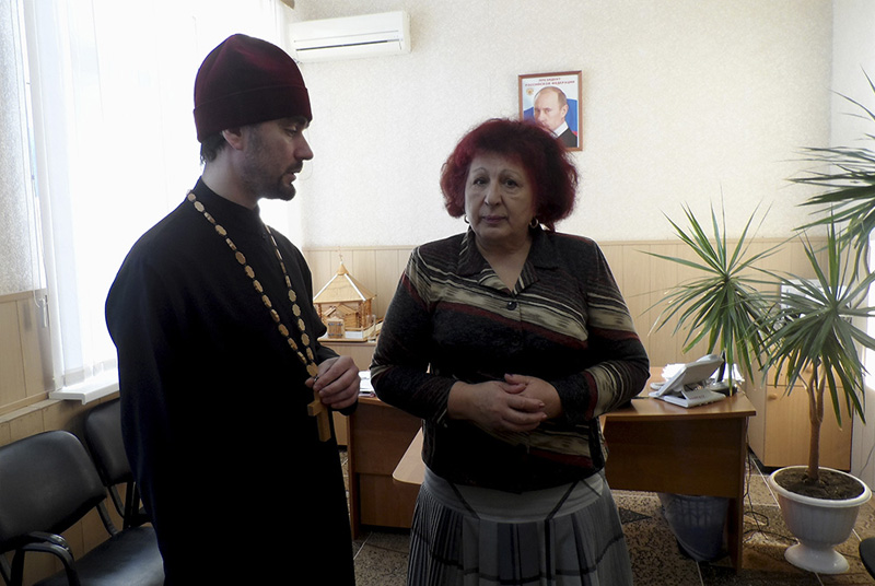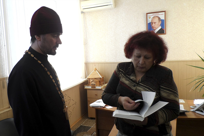 Затем священник передал коллективу Интерната в лице директора Нины Бехтеревой подарочный экземпляр благотворительного тиража книг Нового Завета и Псалтыри. Акция безвозмездной передачи книг Священного писания для распространения в структурах социального служения Русской Православной Церкви проходит благодаря Издательству Московской Патриархии при поддержке Благотворительного фонда имени святителя Григория Богослова.