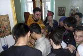 Кульминацией Божественной литургии для воспитанников стала Евхаристия — присутствующие дети причастились Святых Христовых Тайн. В завершение отец Виталий поздравил причастников с принятием Святых Христовых Тайн и в память о встрече вручил рождественские украшения.