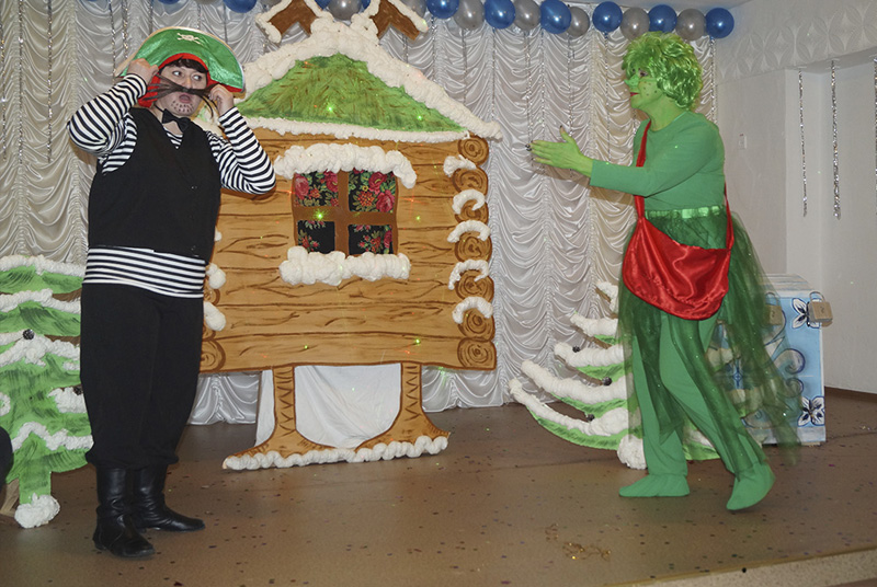 Что делать? Как быть? Детвора ждет новогодних подарков! На помощь детям пришла добрая и заботливая Чичита (сестра Кикиморы), которая вместе с Бармалеем пообещала ребятам отыскать ключи в лесу. В этом им помогли Баба Яга, Водяной, Кот ученый и Кощей. Ключи героями сказки с помощью подсказок детворы были найдены. Сундук с подарками открыт! Дети дружно встретили Новый год, исполнили хоровод возле елочки, прочитали стихи, поиграли со Снегурочкой и Дедом Морозом в веселые подвижные игры, поучаствовали в различных веселых конкурсах.