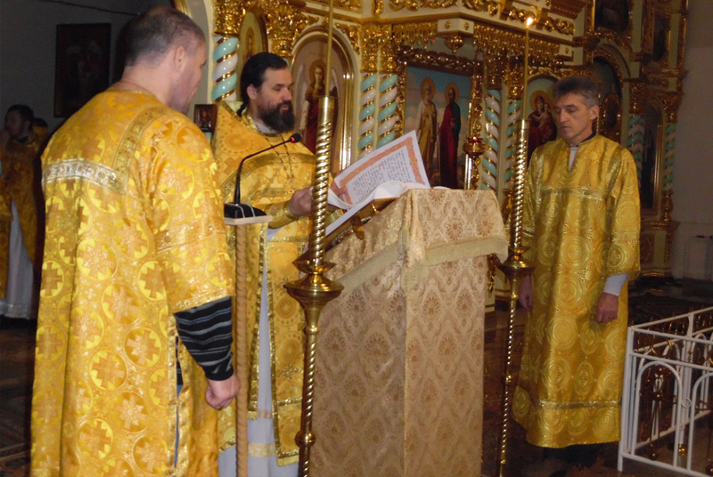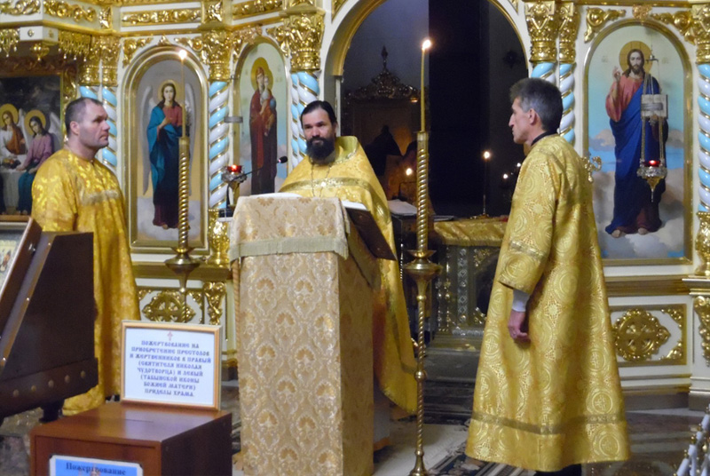 Богослужение возглавил благочинный Новотроицкого округа, настоятель храма протоиерей Сергий Кваша в сослужении клириков храма иерея Сергия Новикова и иерея Никиты Кваши.