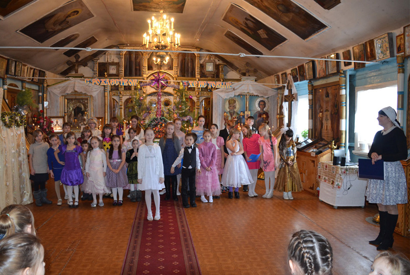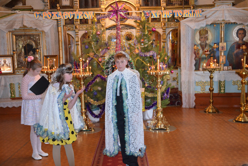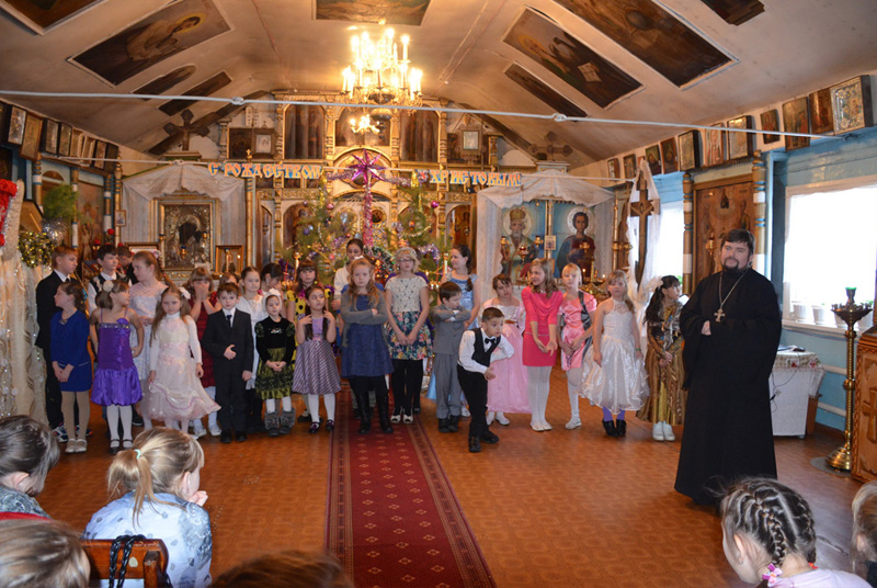 За час до начала торжества храм начал наполняться гостями. Пришло большое число жителей посёлка Заречного с детьми, много прихожан и конечно родители и родственники выступающих. Ребята поздравили гостей с праздником, исполнив инсценировки на рождественскую тему, стихотворения и музыкальные номера. Изюминкой концертной программы стал кукольный спектакль «Рождественская рукавичка». Яркое кукольное представление прошло на одном дыхании и очень понравилось зрителям. Выступление ребята закончили пением многолетствования.