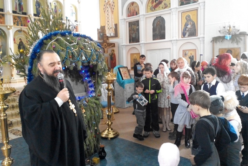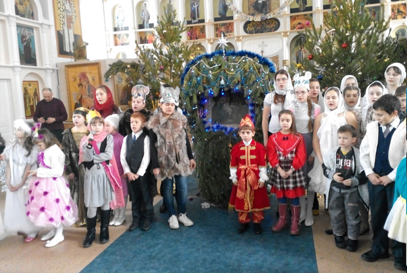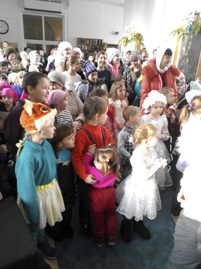 Все присутствующие исполнили тропарь «Рождество Твое, Христе Боже наш…». Затем учащиеся воскресной школы познакомили зрителей с теми удивительными библейскими событиями, которые произошли на Земле две тысячи лет назад. Очень трогательно звучат в этот день стихотворения, песнопения из детских уст. Ребята исполняют свои роли выразительно, эмоционально, стараясь донести до каждого частицу той радости, которую испытывают сами.