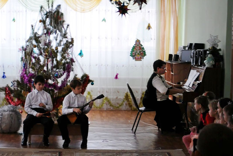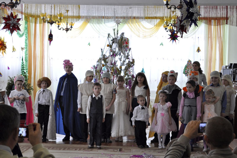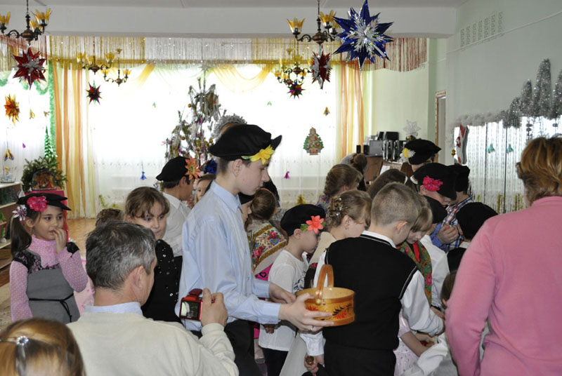 На празднике учащиеся воскресной школы показали рождественскую сценку, пели, танцевали, рассказывали стихи, а старшая группа ребят подготовила музыкальный номер игры на ложках.