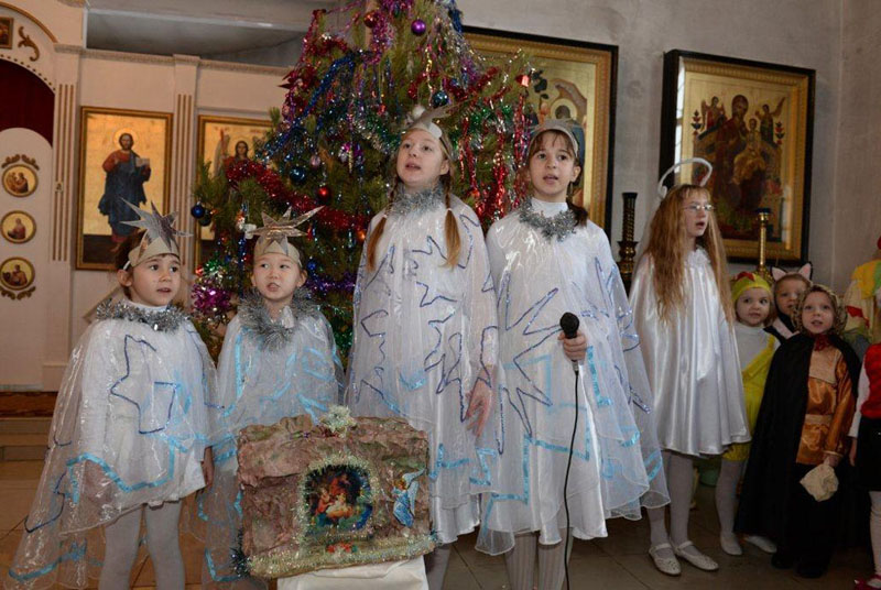 Традиционно всё началось с театрализованного представления. Танец звездочек перенёс собравшихся к пещере близ Вифлеема, где вместе с пастухами и волхвами пели колыбельную рождённому Иисусу.
