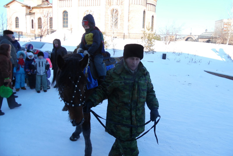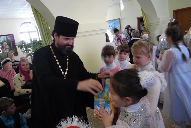 В конце праздника настоятель собора свв. апп. Петра и Павла г. Новотроицка протоиерей Сергий Кваша обратился к детям и гостям. Батюшка поблагодарил за добросовестную и плодотворную работу преподавателей и воспитанников воскресной школы и поздравил всех с Рождеством Христовым. Отец Сергий отметил, как радостно видеть, что дети могут открыто говорить о Христе. Затем священник вручил всем присутствующим детям сладкие подарки. После чаепития, которое организовали родители и прихожане храма, ребята имели возможность покататься верхом на лошади.