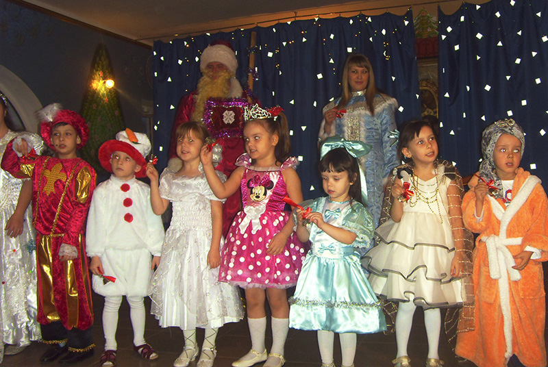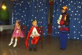 На следующий день для малышей группы раннего эстетического развития (3-7лет) прошел костюмированный бал. В гости к царю Гороху и его дочери Несмеяне пришли сказочные герои: Иван-царевич, Золушка, Оловянный солдатик, Мальвина и другие. Родителям достались роли Деда Мороза, Снегурочки, придворного шута. Праздник прошел в уютной семейной обстановке и закончился традиционным чаепитием.