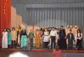 Программа состояла из двух частей. Первая проходила на сцене большого зала. При участии детей воскресной школы состоялся спектакль, основу которого составляла очень увлекательная история. Из представления зрители узнали о жизни братика и сестрички, которые незадолго до праздника Рождества Христова закончили чтение Ветхого Завета. И вот, чтобы не дать детям узнать о рождении Богомладенца, злые духи украли у них Библию. На помощь ребятам пришли верные друзья, которые вместе с ними и отправились в путешествие. На своем пути они встречали дома, в которых жили то грехи и пороки, то великие добродетели. Путешественники много узнали о том, что вредит душе человека, а что является душеполезным. В конце своего пути они пришли в дом благочестивого христианина, который и поведал им историю Рождества Христова и подарил Библию. Закончилось действие совместной коленопреклоненной молитвой к Богомладенцу.