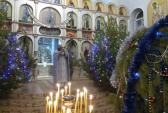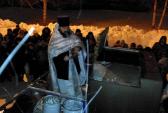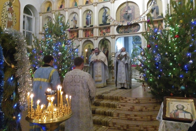 КУВАНДЫК. 18 января 2015 г. В Навечерие Богоявления (Крещенский сочельник) храм Покрова Пресвятой Богородицы встречал своих прихожан в праздничном убранстве, сверкая разноцветными огоньками гирлянд на пышных елках. Благочинный Кувандыкского и Медногорского округов протоиерей Симеон Антипов в сослужении иеромонаха Антония (Ткачева) после Божественной литургии совершил чин великого освящения воды.