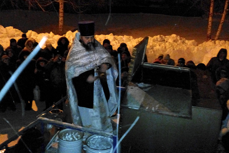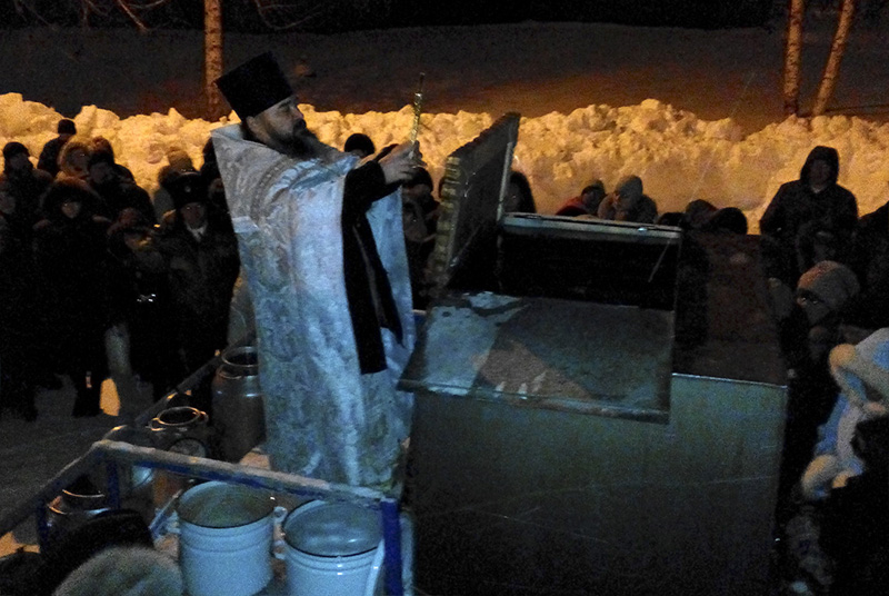 Обращаясь к прихожанам, отец Симеон напомнил о благоговейном отношении к святыне, посылаемой нам великой Божией милостью. «Почерпнув святую воду, - сказал батюшка,- остерегайтесь празднословия, унося её домой с Иисусовой молитвой на устах, чтобы не рассеять полученную благодать Божию». Отец Симеон щедро окропил всех верующих. Люди черпали святую воду, пили, радовались. Кто-то отправился к приготовленным прорубям вместе с настоятелем для освящения водоема. Самые смелые окунались, перекрестившись во Имя Отца и Сына и Святаго Духа! Аминь!