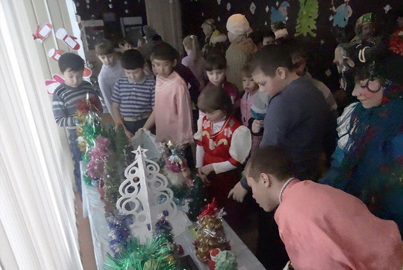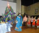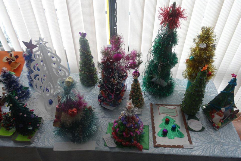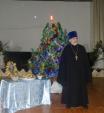 В фойе были размещены конкурсные работы, посвященные Рождественской ёлке. Дети и их родители проявили удивительную смекалку и трудолюбие: каждая ёлочка отличалась и оригинальностью, и красотой. Победители конкурса получили от иерея Вячеслава в подарок иконы.