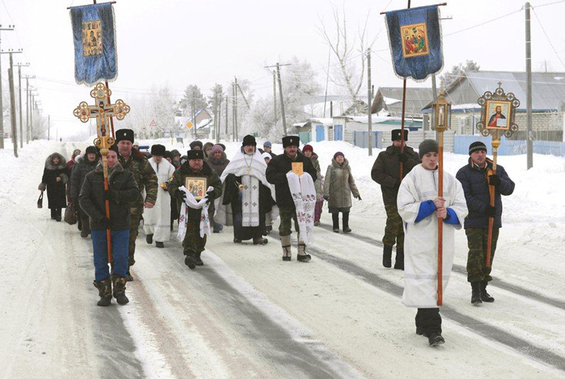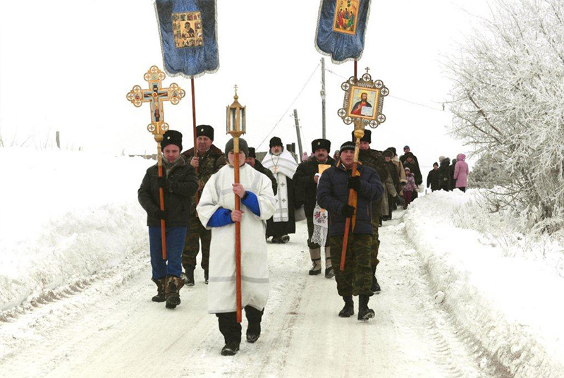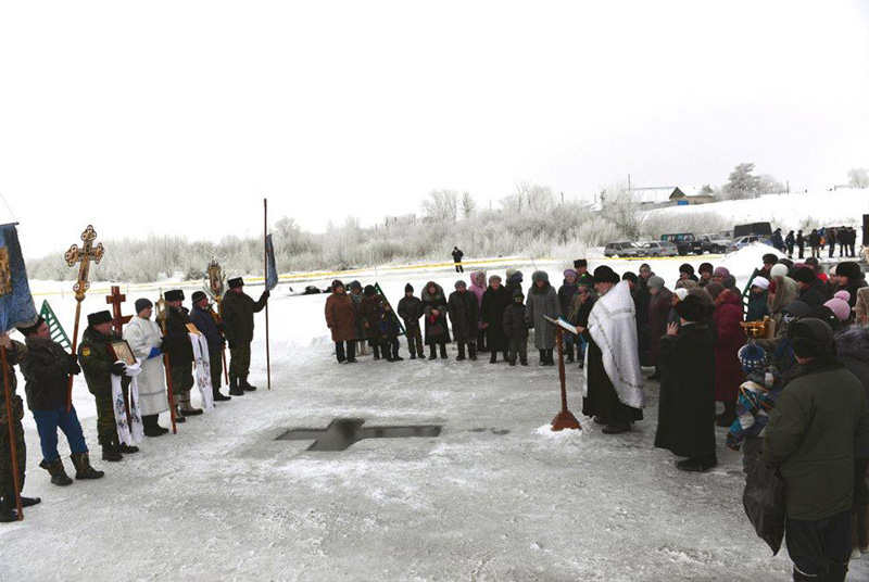 АДАМОВКА. 18 января 2015 г. В Навечерие Богоявления Господня в поселке Адамовке состоялся крестный ход на реку Жарлы, где прошел чин Великого освящения воды.