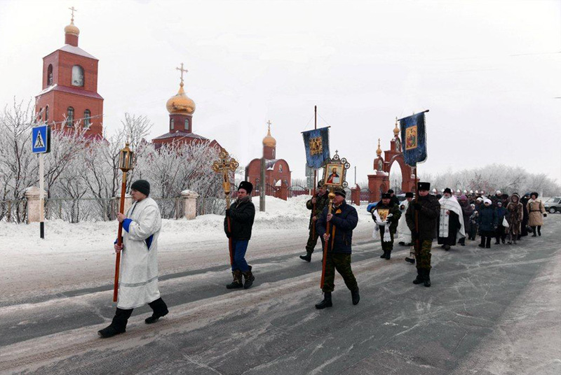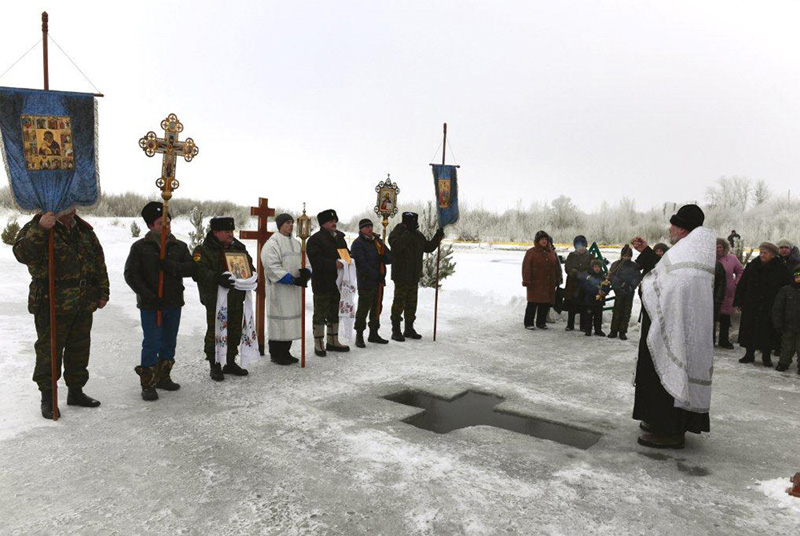Благочинный Адамовского округа иерей Вячеслав Кочкин после Великой вечерни и славления праздника в храме Покрова Пресвятой Богородицы посёлка Адамовки возглавил крестный ход на реку Жарлы. В праздничном шествии приняли участие казаки Адамовского хуторского казачьего общества. У водоема при многочисленном скоплении верующих священник совершил чин Великого освящения воды, затем окропил присутствующих святой водой.