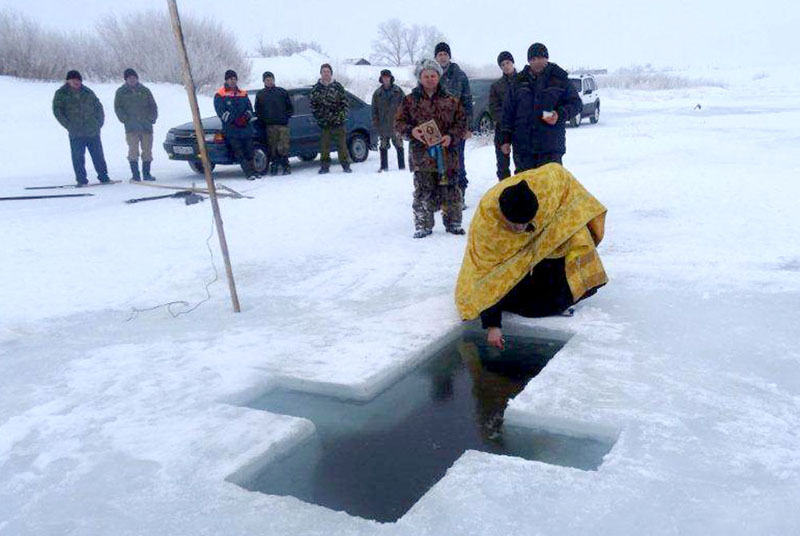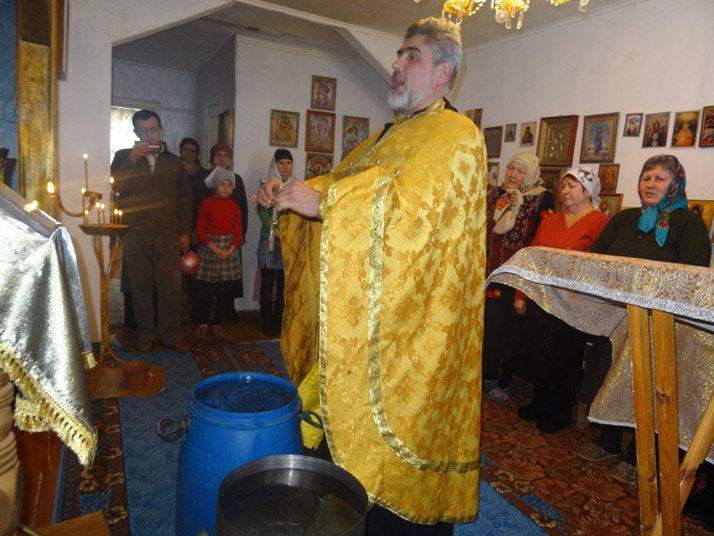 АДАМОВКА. 18 января 2015 г. В Навечерие Богоявления благочинный Адамовского округа иерей Вячеслав Кочкин совершил Великое освящение воды в ряде водоемов и молитвенных домах, которые находятся один от другого на расстоянии в десятки и сотни километров.