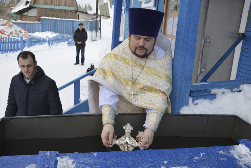 МЕДНОГОРСК-САРА-НОВОПОКРОВКА. 19 января 2015 г. В Крещенские дни был совершен чин великого освящения воды в местной речке и в молитвенных домах отдаленных сел.