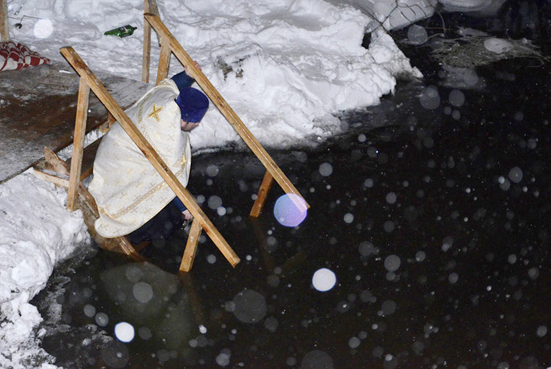 По согласованию с администрацией города здесь было отведено место для всех, кто пожелает окунуться в освящённые воды, и, несмотря на позднее ночное время, около реки собралось большое количество крепких духом и телом медногорцев. Возле иордани дежурили бригада «Скорой помощи» и сотрудники полиции. По окончании освящения отец Андрей поздравил всех собравшихся с праздником Крещения Господа нашего Иисуса Христа и окропил их святой водой.
