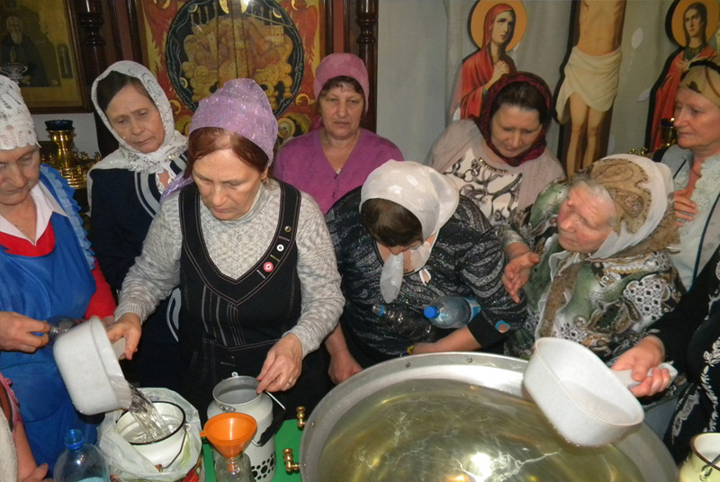 Утром праздничного дня отец Феодор совершил чин великого освящения воды озера Буруктал. После богослужения оказалось множество желающих окунуться в водоём, выразив сопричастность великому празднику.
