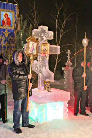 Всю ночь и в последующие дни не прекращается поток людей к нашему ледяному городку - «Иордани». Подойдя к иконе Спасителя, установленной на резном ледяном аналое, они крестятся, прикладываются к ней, кто как может, но все с надеждой и со своими просьбами, а затем проходят к величественному Кресту, прикладываются к нему, трогают руками и умывают лица… Помоги им, Господи.