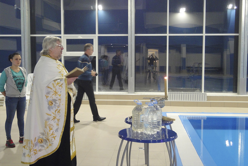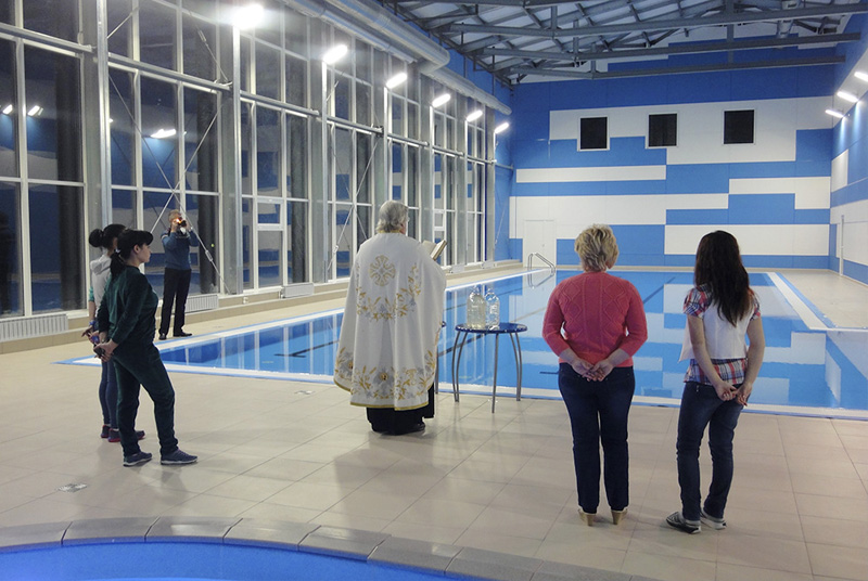 Батюшка освятил не только купель, но и воду в бассейне. Жители умиротворенно ждали окончания водосвятного молебна на улице, затем дружно вошли в фитнес-центр. До утра бассейн Космотраса был открыт для всех, кто после проповеди игумена Онисима наконец-то проникся истинной сущностью крещенского омовения в Великий праздник Господень.
