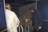ЯСНЫЙ. 19 января 2015 г. Благодаря сотрудничеству отдела Орской епархии по взаимодействию с Вооруженными силами и международного космического центра «Ясный-Космотрас» руководитель отдела игумен Онисим (Пашинов) освятил в ночь с 18 на 19 января крещенскую купель возле бассейна фитнес-центра при Космотрасе.