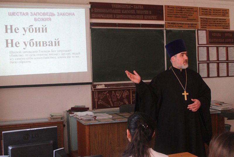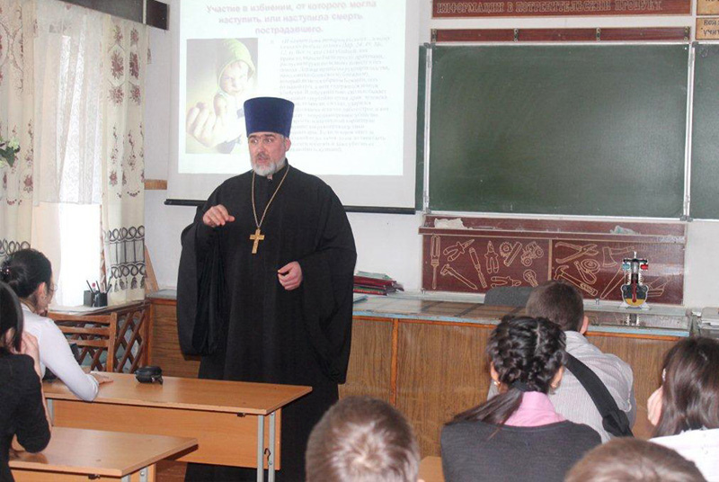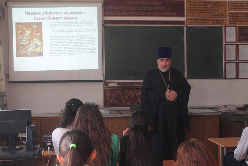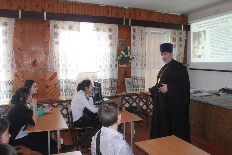 Священник подготовил для учащихся района и их родителей лекцию, раскрывающую значение шестой заповеди «Не убий». Чтение первой лекции на новую тему состоялось 20 января в Адамовской школе № 1 для учащихся 8 класса.