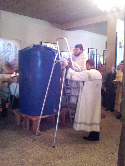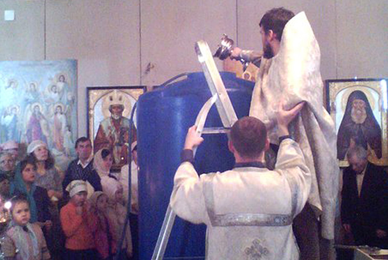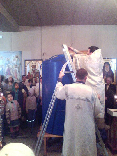 В ночь с 18 на 19 января в храме Казанской иконы Богородицы собрались прихожане во главе с настоятелем иереем Вячеславом Коротковым. После Божественной литургии был совершен чин Великого освящения воды. В прошлом году милостью Божией храм приобрел огромные емкости для святой воды, и батюшке на этот раз пришлось подниматься по стремянке для погружения креста. Но благодаря этим трудам жители поселка ОЗТП в течение нескольких дней имеют возможность набрать крещенской воды. Ее теперь хватит всем.