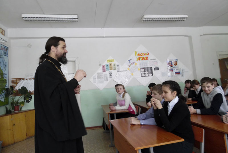 НОВОТРОИЦК. 5 февраля 2015 г. Благочинный Новотроицкого округа, настоятель храма святых апостолов Петра и Павла г. Новотроицка протоиерей Сергий Кваша провёл беседу на духовные темы под названием «Идём дорогою добра».