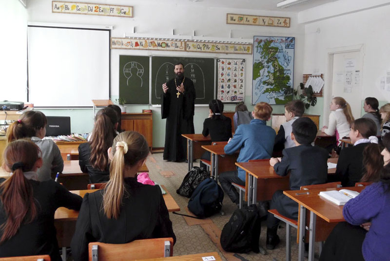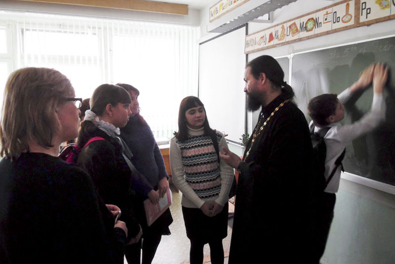 Встреча со школьниками состоялась в средней общеобразовательной школе № 22. Священник рассказал семиклассникам о духовных законах. Заповеди Божии вывали интерес у ребят, они спрашивали о том, что особенно привлекло их внимание, и сами пробовали отвечать на заданные вопросы. Беседа получилась интересной и оживлённой.