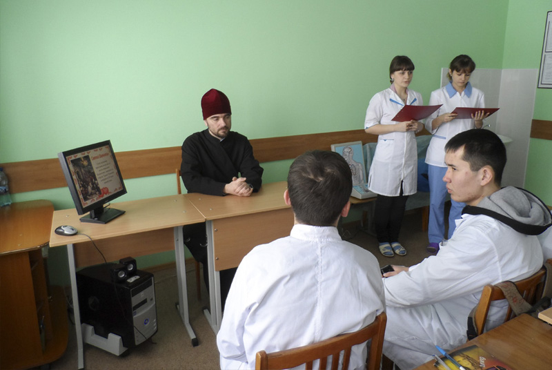 ГАЙ. 17 февраля 2015 г. В рамках программы православного просвещения молодежи настоятель храма святых апостолов Петра и Павла иерей Виталий Кудрявцев провел встречу со студентами Гайского медицинского колледжа.