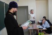 НОВОТРОИЦК. 16 февраля 2015 г. Благочинный Новотроицкого округа, настоятель собора свв. апп. Петра и Павла г. Новотроицка протоиерей Сергий Кваша и клирик Петропавловского храма иерей Сергий Новиков вручили дипломы победителям регионального этапа Международного конкурса детского творчества «Красота Божьего мира».