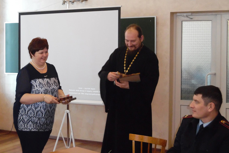 В конце урока администрация колледжа поблагодарила гостей за интересную встречу, поздравила всех с Днем защитника Отечества и вручила отцу Александру благодарственное письмо за сотрудничество в деле духовно-нравственного воспитания подрастающего поколения.